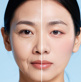 面部年轻化多面部除皱、鼻根纹、鱼尾纹、鼻唇沟、唇纹、口周纹、耳前纵纹、颈横纹、双下巴(火鸡纹)、皮肤松弛拉皮、注射性填充体表凹陷、嫩肤除皱、中面部提升等;
